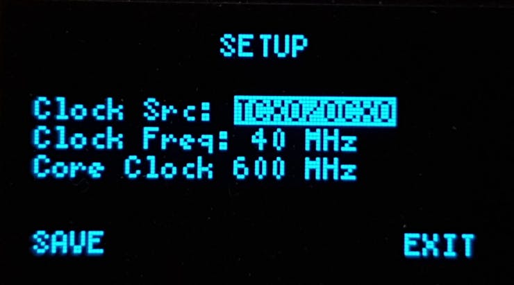 - Additional menu for setting the clock source with the possibility of overclocking. Overclocking makes it possible to get Fout = 225MHz @ up to 600 MSPS.
