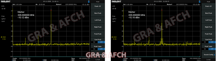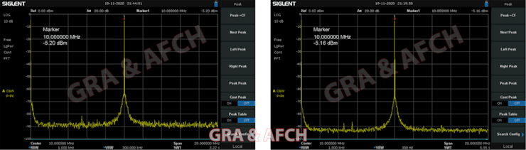 Figure 18 shows the noise level when using the built-in PLL in DDS. The PLL multiplies the frequency of a 25 MHz generator by 20 times. We use a frequency – 40 MHz (x12 Multiplier) or 50 MHz (x10 Multiplier) from TCXO which gives even more stability.